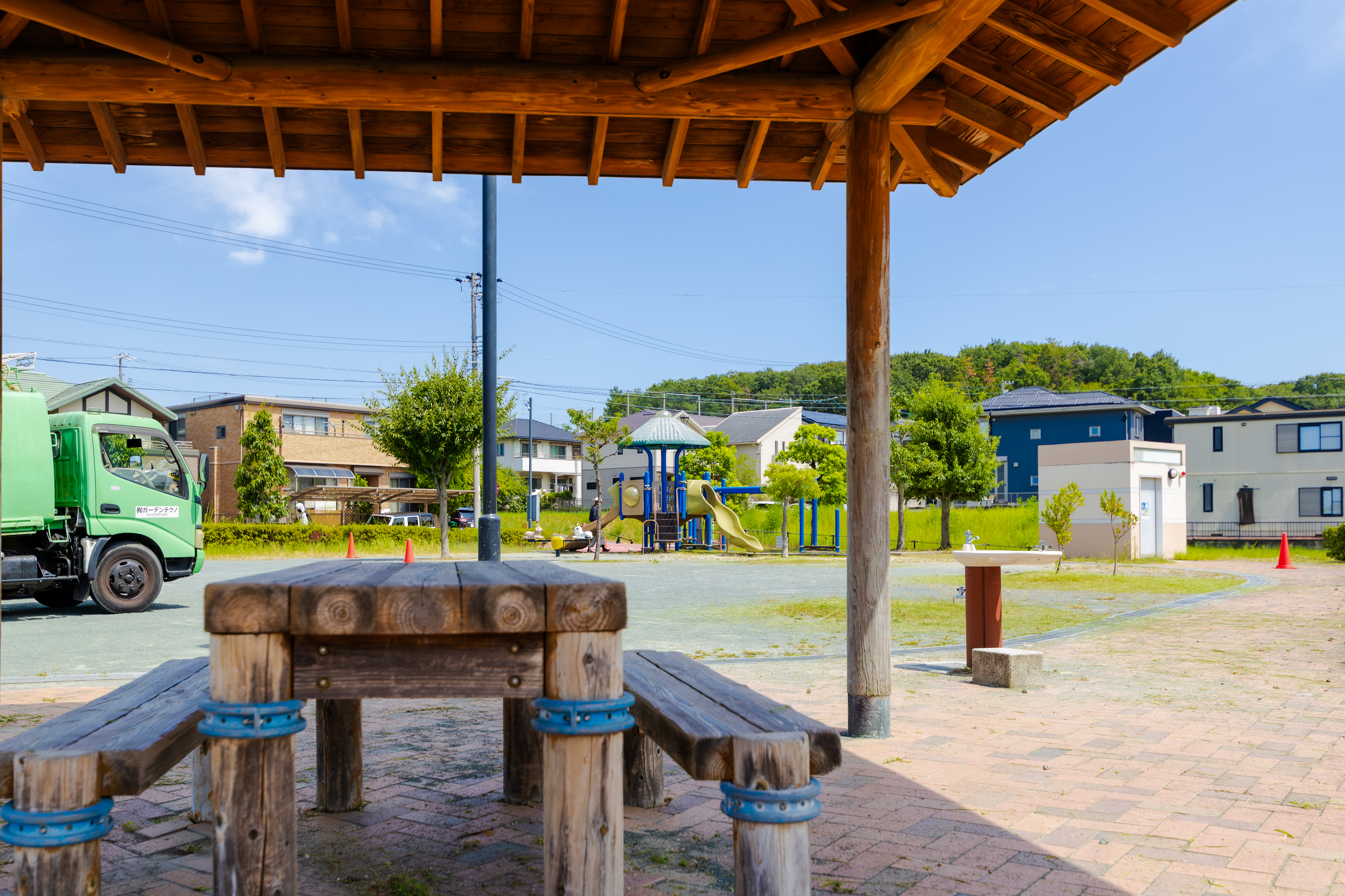 取材時も、この公園、平日の人がいない時間帯に、環境整備する業者さまが作業をされていました。