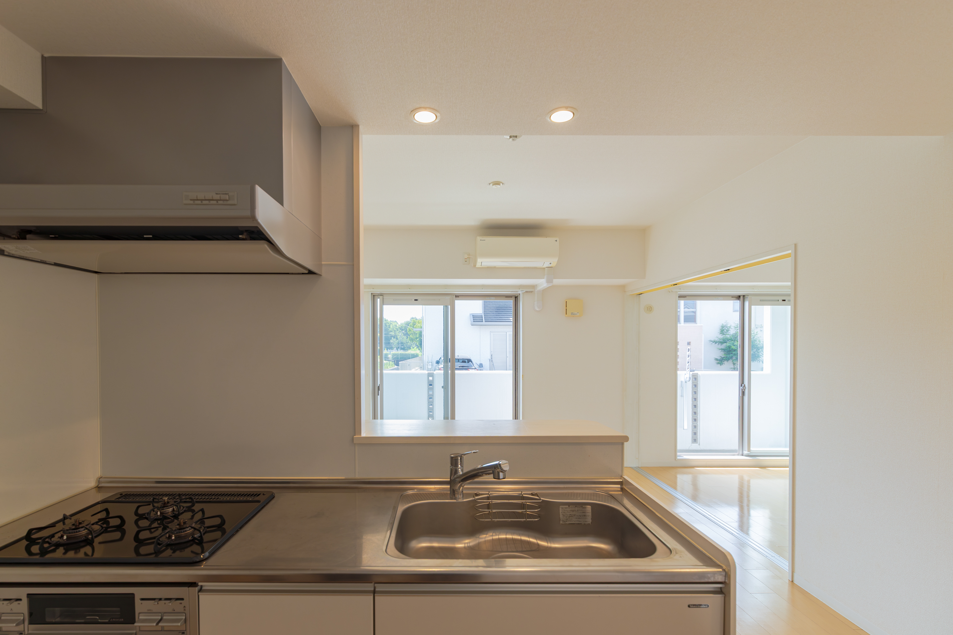 給湯器(都市ガス) / ガスコンロ(三個口) / システムキッチン / 対面式キッチン / カウンターキッチン
