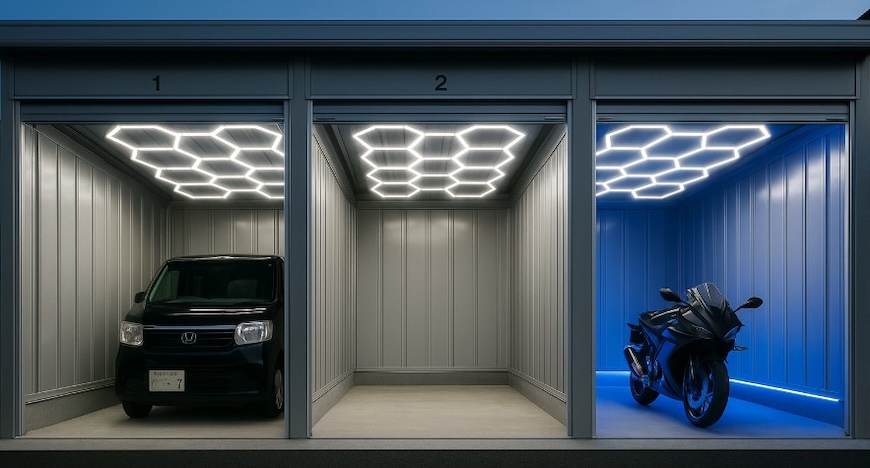 ▲愛車が映えるハニカムライト