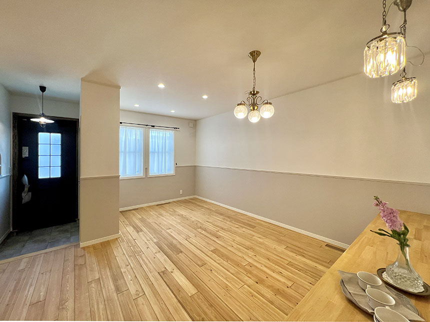 1、2階共、本物素材、無垢のフローリング、1階LDKおよび洗面室の壁には、本物の珪藻土が塗られます。