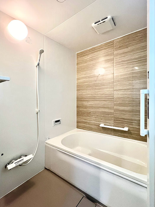 バスルームもアクセントクロスが少し異なり、