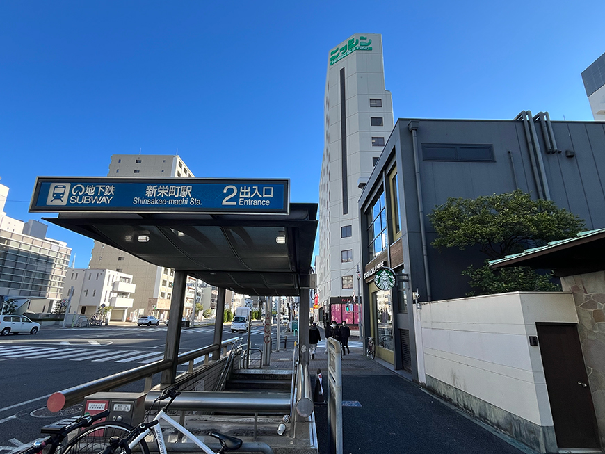 地下鉄東山線「新栄町」駅・2番出口が目の前という立地。